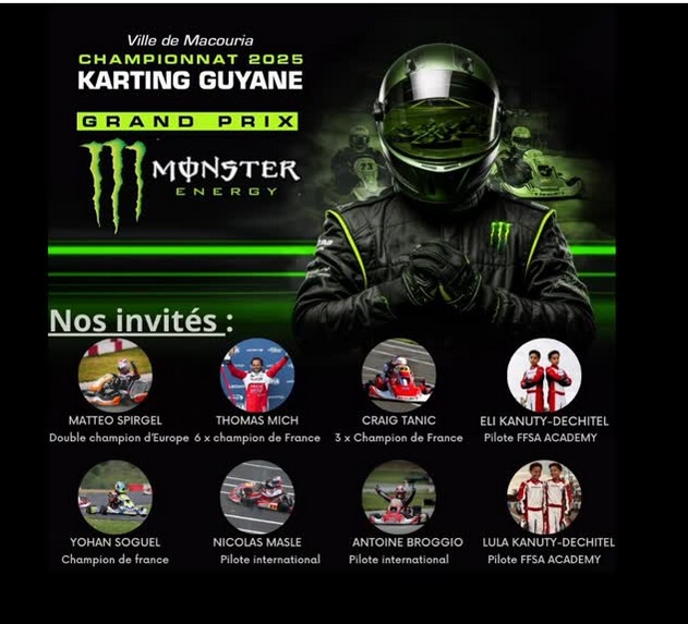 🏆GRAND PRIX MONSTER ENERGY 🏆 Guyane 7 Décembre 2025 Soumis par gilles.masle@g… le jeu 04/12/2025 - 05:12 En savoir plus sur 🏆GRAND PRIX MONSTER ENERGY 🏆 Guyane 7 Décembre 2025